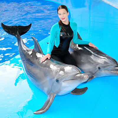 Испытайте волшебные эмоции во время общения и плавания с дельфинами в дельфинарии Алушты